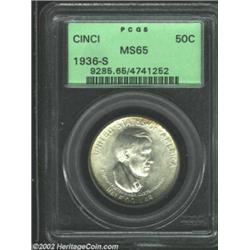 1936-S 50C Cincinnati MS65 PCGS. Pale golden encircles the coin margins, and there are no noticeable marks on the coin, which would be a nice addition to any collection or set. Important notice: We expect to be auctioning lots at the rate of 200-250 per hour. Sometimes eBay Premier live bid software cannot keep up with that pace, so we strongly recommend that you place a realistic proxy bid now as insurance to avoid disappointment. Also please note that all Heritage/CAA lots purchased through eBay Premier carry a 20% Buyer's Premium. Please make sure you read the Terms and Conditions.