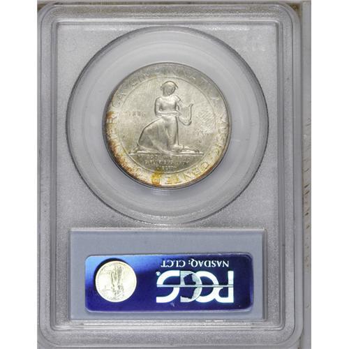 <B>1936-S<50C> Cincinnati MS66 PCGS.</B></I> A nicely struck silver-gray piece with spots of red-orange and russet toning. Foster's forehead and lapel have a few small marks. PCGS has graded just one finer example (8/06).