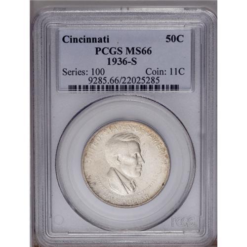 1936-S 50C Cincinnati MS66 PCGS. A satiny and undistur 1936-S[50C] Cincinnati MS66 PCGS.