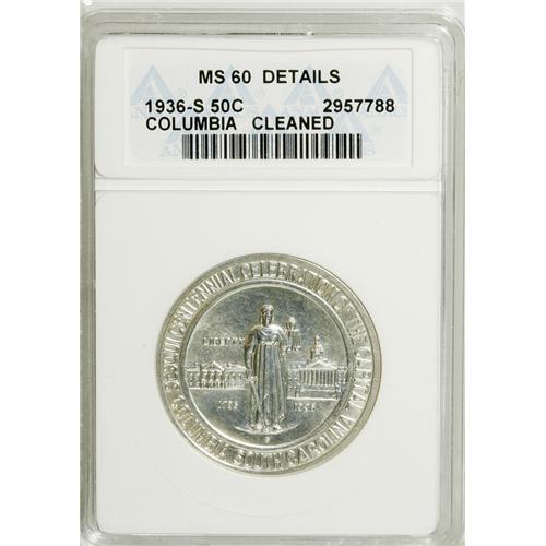 1936-S 50C Columbia--Cleaned--ANACS. MS60 Details.
