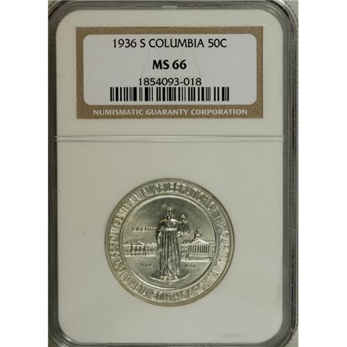 1936-S 50C Columbia MS66 NGC. NGC Census: (568/116). P