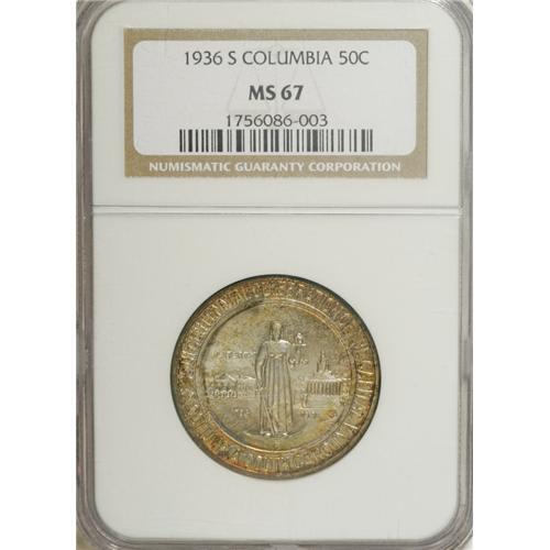 1936-S 50C Columbia MS67 NGC. Typically well struck wi