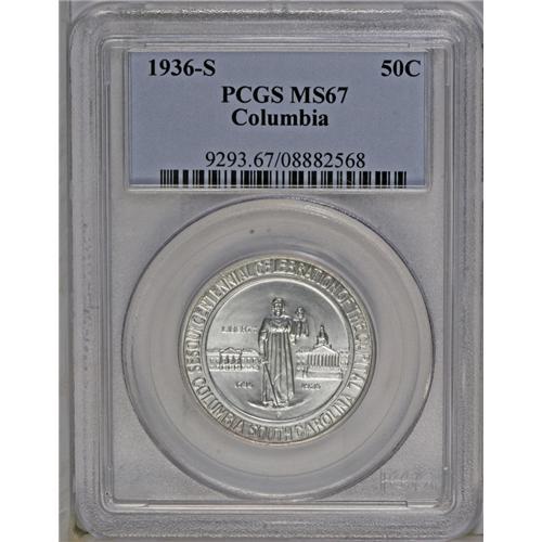 1936-S 50C Columbia MS67 PCGS. Brilliant and sharply s