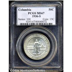 <table><tr><td><TABLE cellSpacing=0 cellPadding=0 width="100%" bgColor=#000000 border=0><TBODY> <TR><TD width="100%"><TABLE cellSpacing=1 cellPadding=3 width="100%" border=0><TBODY><TR><TD width="100%" bgColor=#79735c><FONT face=arial color=#ffffff size=3><B>Description</B> </FONT></TD></TR><TR><TD width="100%" bgColor=#ffffff><FONT face=arial size=2><B>1936-S 50C Columbia MS67 PCGS.</B></I> Mostly brilliant with extraordinarily clean surfaces. This is a very impressive Columbia that would fit nicely in a high grade type collection. </FONT></TD></TR></TBODY></TABLE></TD></TR></TBODY></TABLE><BR><A name=PricesRealized></A><TABLE cellSpacing=0 cellPadding=0 width="100%" bgColor=#000000 border=0><TBODY><TR><TD width="100%"><TABLE cellSpacing=1 cellPadding=3 width="100%" border=0><TBODY><TR><TD width="100%" bgColor=#79735c><A name=PR><FONT face=arial color=#ffffff size=3><B>Previous Prices from Heritage Auctions</B> </FONT></A></TD></TR><TR><TD bgColor=#f6f6ed><TABLE cellSpacing=0 cellPadding=0 width="100%" border=1><TBODY><TR><TD align=middle width="33%"><B>Date</B></TD><TD align=middle width="33%"><B>Service</B></TD><TD align=middle width="33%"><B>Price</B></TD></TR><TR bgColor=whitesmoke><TD width="33%"><B>08/27/2002</B></TD><TD width="33%">NGC</TD><TD width="33%">$862.50</TD></TR><TR bgColor=whitesmoke><TD width="33%"><B>06/26/2001</B></TD><TD width="33%">NGC</TD><TD width="33%">$550.00</TD></TR><TR bgColor=whitesmoke><TD width="33%"><B>01/07/2004</B></TD><TD width="33%">PCGS</TD><TD width="33%">$864.80</TD></TR><TR bgColor=whitesmoke><TD width="33%"><B>09/20/2003</B></TD><TD width="33%">PCGS</TD><TD width="33%">$862.50</TD></TR><TR bgColor=whitesmoke><TD width="33%"><B>05/03/2003</B></TD><TD width="33%">PCGS</TD><TD width="33%">$977.50</TD></TR><TR bgColor=whitesmoke><TD width="33%"><B>07/30/2002</B></TD><TD width="33%">NGC</TD><TD width="33%">$948.75</TD></TR><TR bgColor=whitesmoke><TD width="33%"><B>01/12/2002</B></TD><TD width="33%">NGC</TD><TD width="33%">$632.50</TD></TR><TR bgColor=whitesmoke><TD width="33%"><B>11/21/1997</B></TD><TD width="33%">NGC</TD><TD width="33%">$715.00</TD></TR><TR bgColor=whitesmoke><TD width="33%"><B>05/02/1997</B></TD><TD width="33%">PCGS</TD><TD width="33%">$1,512.50</TD></TR><TR bgColor=whitesmoke><TD width="33%"><B>08/19/1995</B></TD><TD width="33%">NGC</TD><TD width="33%">$495.00</TD></TR><TR bgColor=whitesmoke><TD width="33%"><B>06/02/1995</B></TD><TD width="33%">NGC</TD><TD width="33%">$660.00</TD></TR><TR bgColor=whitesmoke><TD width="33%"><B>06/03/1994</B></TD><TD width="33%">NGC</TD><TD width="33%">$671.00</TD></TR></TBODY></TABLE></TD></TR><TR><TD bgColor=#ffffff><FONT face=arial size=1 ?>PLEASE NOTE: All prices realized reflect the final hammer price PLUS the buyer's premium in auctions that charge a buyer's premium. Each item has a notation at the top of the listing indicating whether that lot included a buyer's premium. Example: A item that sells with a final hammer price of $100 and a 20% buyer's premium will display with a price realized of $120. All information listed is intended to be as accurate as possible, but errors are possible. Please use this guide carefully and inform us of any inaccuracies. </FONT></TD></TR></TBODY></TABLE></TD></TR></TBODY></TABLE><BR><TABLE cellSpacing=0 cellPadding=0 width="100%" bgColor=#000000 border=0><TBODY><TR><TD width="100%"><TABLE cellSpacing=1 cellPadding=3 width="100%" border=0><TBODY><TR><TD width="100%" bgColor=#79735c colSpan=6><FONT face=arial color=#ffffff size=3><B>Price Guide*</B> </FONT></TD></TR><TR bgColor=#f6f6ed><TD align=middle><B>Grade</B> </TD><TD align=middle><B>Coin World<BR>(Trends)</B> </TD><TD align=middle><B>Numismedia<BR>Retail</B> </TD><TD align=middle><B>Numismedia<BR>Wholesale</B> </TD><TD align=middle><B>Coin<BR>Universe</B> </TD><TD align=middle><B>Heritage<BR>Value Index</B> </TD></TR><TR bgColor=#ffffff><TD align=middle>66</TD><TD align=right>---</TD><TD align=right>$320.00</TD><TD align=right>$256.00</TD><TD align=right>$435.00</TD><TD align=right>$285.00</TD></TR><TR style="FONT-WEIGHT: bold" bgColor=#cccfdd><TD align=middle>67</TD><TD align=right>---</TD><TD align=right>---</TD><TD align=right>$975.00</TD><TD align=right>$1,350.00</TD><TD align=right>$430.00</TD></TR><TR bgColor=#ffffff><TD align=middle>68</TD><TD align=right>---</TD><TD align=right>---</TD><TD align=right>$2,760.00</TD><TD align=right>$7,250.00</TD><TD align=right>---</TD></TR><TR bgColor=#ffffff><TD colSpan=6><FONT size=1>*All information listed is intended to be as accurate as possible, but errors are possible. No item may be returned or refused based on this information which is provided as a service to our customers. You should contact each pricing source directly to determine the accuracy of this information. </FONT></TD></TR></TBODY></TABLE></TD></TR></TBODY></TABLE><BR><TABLE cellSpacing=0 cellPadding=0 width="100%" bgColor=#000000 border=0><TBODY><TR><TD width="100%"><TABLE cellSpacing=1 cellPadding=3 width="100%" border=0><TBODY><TR><TD width="100%" bgColor=#79735c><FONT face=arial color=#ffffff size=3><B>Population Guide</B> </FONT></TD></TR><TR bgColor=#ffffff><TD align=middle><!-- Begin Output of Population Grid--><TABLE cellSpacing=0 cellPadding=0 width="100%" border=0><TBODY><TR><TD vAlign=center><TABLE cellSpacing=0 width="100%" border=1 cellsadding="3"><TBODY><TR><TD vAlign=center><TABLE cellSpacing=0 cellPadding=3 width="100%" border=1><TBODY><TR><TD vAlign=center align=middle bgColor=#f0f1e8 colSpan=2 <CENTER><FONT face=Arial size=2><B>PCGS Pop </B></FONT><CENTER></CENTER></TD><TD vAlign=center align=middle bgColor=#f0f1e8 colSpan=2><CENTER><FONT face=Arial size=2><B>NGC Pop</B></CENTER></FONT></TD></TR><TR><TD vAlign=center><FONT face=Arial size=2>(67)</FONT> </TD><TD vAlign=center align=right><FONT face=Arial size=2>62</FONT> </TD><TD vAlign=center><FONT face=Arial size=2>(67)</FONT> </TD><TD vAlign=center align=right><FONT face=Arial size=2>87</FONT> </TD></TR><TR><TD vAlign=cen