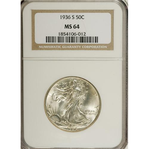 1936-S 50C MS64 NGC. NGC Census: (350/563). PCGS P