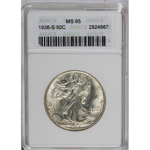 1936-S 50C MS65 ANACS. A solidly struck and frosty Gem