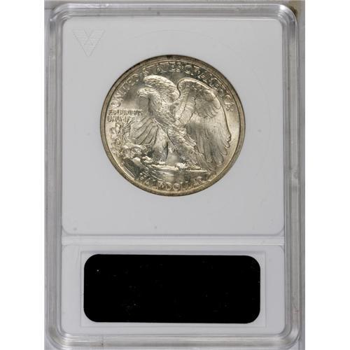 <B>1936-S<50C> MS65 ANACS.</B></I> A solidly struck and frosty Gem with a fully defined thumb. The gold-gray surfaces have several luster breaks in the fields on each side.