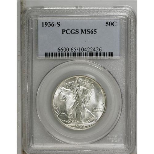 1936-S 50C MS65 PCGS. A pleasing Gem, nicely struck wi