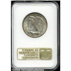 <B>1936-S<50C> MS66 NGC.</B></I> Olive and rose-gray color covers this seemingly blemish-free premium Gem. Interestingly, the tone is variegated in intensity to the right of Liberty on the obverse.<BR><I>From The Dr. Frank Lanza Collection of Walking Liberty Half Dollars.</B></I> <BR><BR><B>Important notice:</B> Heritage usually auctions material at the rate of 200-250 lots per hour. On some occasions eBay Live bid software or the Internet may not be able to keep up with the pace of the auction. We recommend placing a realistic absentee bid now as insurance to avoid disappointment. Occasionally the auctioneer may eliminate or reject an eBay Live bid, and the auctioneer may also reopen a lot after the close of the eBay live bidding (usually because we missed an audience bid), and may reject your bid even if it shows you as the winning bidder. By bidding via eBay Live, you agree that Heritage may award the lot to another bidder at its sole discretion under the circumstances described above or any other reasonable circumstances. Since eBay bids are not shown to us until we open the lot on the floor, we treat those bids just like floor bids. In most cases the floor responds before the eBay bid is presented to us, due to Internet lag time, so for consistency we have made it a policy that floor bids are always considered first over tie eBay live bids. Also please note that all Heritage lots purchased through eBay Live carry a 20% Buyer's Premium. Please make sure you read the Terms and Conditions before you bid. </span></font></tr></table></td></tr></table>