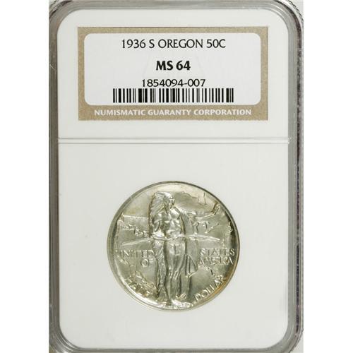 1936-S 50C Oregon MS64 NGC. NGC Census: (126/802). PCG