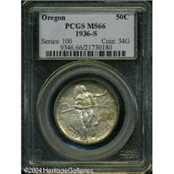 1936-S 50C Oregon MS66 PCGS. Splotches of khaki pa <B>1936-S 50C Oregon MS66 PCGS.</B></I> Splotches of khaki patina roam over lustrous surfaces on this well struck, minimally abraded Oregon commemorative. <BR><BR><B>Important notice:</B> Heritage usually auctions material at the rate of 200-250 lots per hour. On some occasions eBay Live bid software or the Internet may not be able to keep up with the pace of the auction. We recommend placing a realistic absentee bid now as insurance to avoid disappointment. Occasionally the auctioneer may eliminate or reject an eBay Live bid, and the auctioneer may also reopen a lot after the close of the eBay live bidding (usually because we missed an audience bid), and may reject your bid even if it shows you as the winning bidder. By bidding via eBay Live, you agree that Heritage may award the lot to another bidder at its sole discretion under the circumstances described above or any other reasonable circumstances. Since eBay bids are not shown to us until we open the lot on the floor, we treat those bids just like floor bids. In most cases the floor responds before the eBay bid is presented to us, due to Internet lag time, so for consistency we have made it a policy that floor bids are always considered first over tie eBay live bids. Also please note that all Heritage lots purchased through eBay Live carry a 20% Buyer's Premium. Please make sure you read the Terms and Conditions before you bid. This lot is being auctioned in conjunction with a live floor auction by Heritage Galleries & Auctioneers. All final auction and invoice information will be supplied by Heritage Galleries & Auctioneers, and all other information should be considered preliminary. Lot:7926