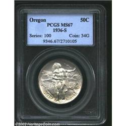 1936-S 50C Oregon MS67 PCGS. A razor-sharp Superb Gem that has good luster and wisps of gray-green c