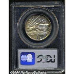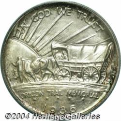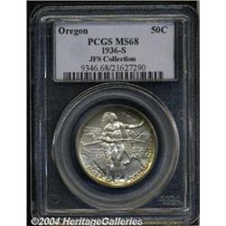 <B>1936-S<50C> Oregon MS68 PCGS.</B></I> The striking details on this masterfully preserved Superb Gem are even more complete than usual, and the luxurious iridescent toning, based upon a foundation of lovely golden color, yields to bright-green, russet, and crimson highlights near selected border areas of each side. A small lateral abrasion near the center of the reverse is the only notable distraction. Population: 3 in 68, none finer at either service (6/04).<BR><I>From the JFS Collection, the #1 All-Time PCGS Registry Set.</B></I> <BR><BR><B>Important notice:</B> Heritage usually auctions material at the rate of 200-250 lots per hour. On some occasions eBay Live bid software or the Internet may not be able to keep up with the pace of the auction. We recommend placing a realistic absentee bid now as insurance to avoid disappointment. Occasionally the auctioneer may eliminate or reject an eBay Live bid, and the auctioneer may also reopen a lot after the close of the eBay live bidding (usually because we missed an audience bid), and may reject your bid even if it shows you as the winning bidder. By bidding via eBay Live, you agree that Heritage may award the lot to another bidder at its sole discretion under the circumstances described above or any other reasonable circumstances. Since eBay bids are not shown to us until we open the lot on the floor, we treat those bids just like floor bids. In most cases the floor responds before the eBay bid is presented to us, due to Internet lag time, so for consistency we have made it a policy that floor bids are always considered first over tie eBay live bids. Also please note that all Heritage lots purchased through eBay Live carry a 20% Buyer's Premium. Please make sure you read the Terms and Conditions before you bid. </span></font></tr></table></td></tr></table>