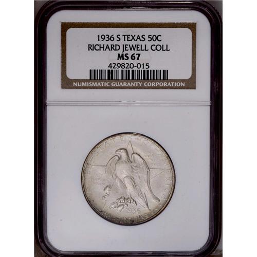 1936-S 50C Texas MS67 NGC. Ex: Richard Jewell Collecti 1936-S[50C] Texas MS67 NGC.