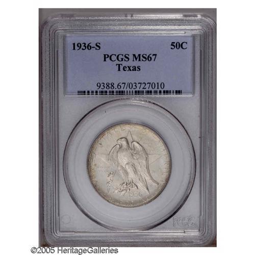 1936-S 50C Texas MS67 PCGS. Fully struck and pristine, 1936-S[50C] Texas MS67 PCGS.