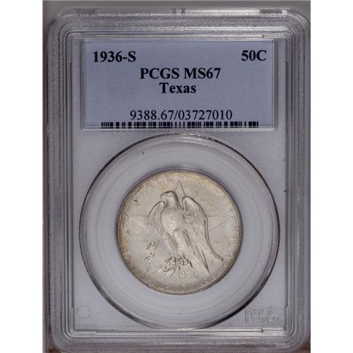 1936-S 50C Texas MS67 PCGS. Fully struck and pristine, 1936-S[50C] Texas MS67 PCGS.