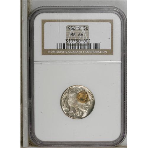 1936-S 5C MS66 NGC. NGC Census: (642/72). PCGS Pop