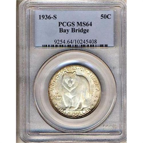 <b>1936-S Bay Bridge Half Dollar. PCGS graded MS64.</b> Iridescent satin to frosted white resonate off of the surface of this pristine Gem with a dash of natural toning to add an air of distinction <b>(PCGS # 9254)</b> <i>