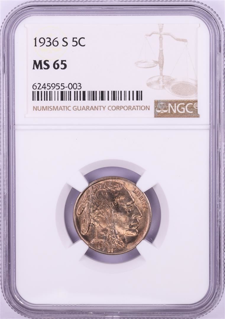 One 1936-S Buffalo Nickel Coin NGC MS65. NGC Certified.