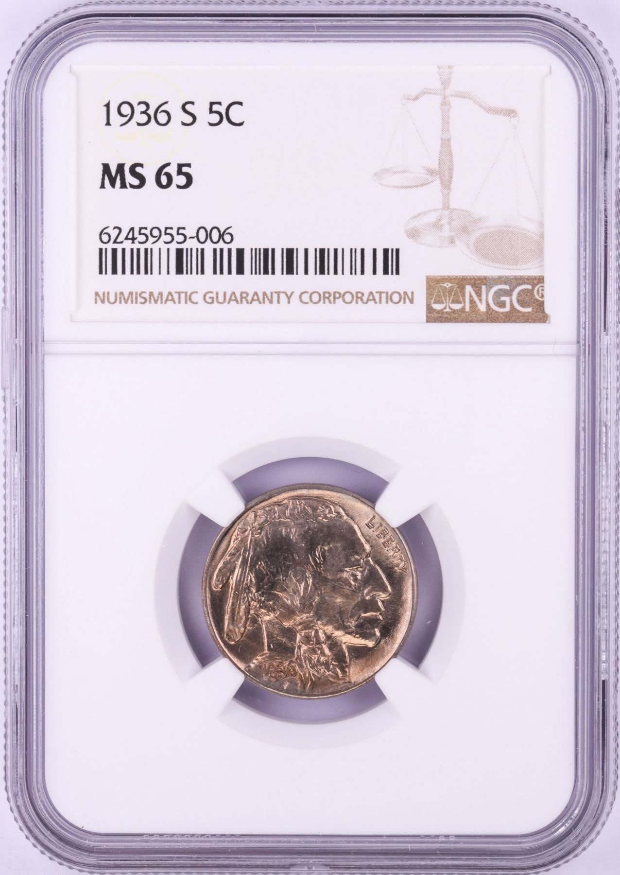 One 1936-S Buffalo Nickel Coin NGC MS65.