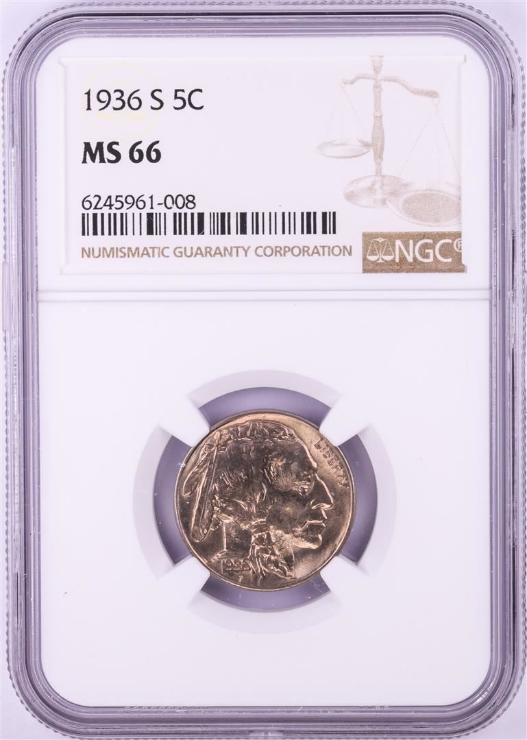 One 1936-S Buffalo Nickel Coin NGC MS66. NGC Certified.