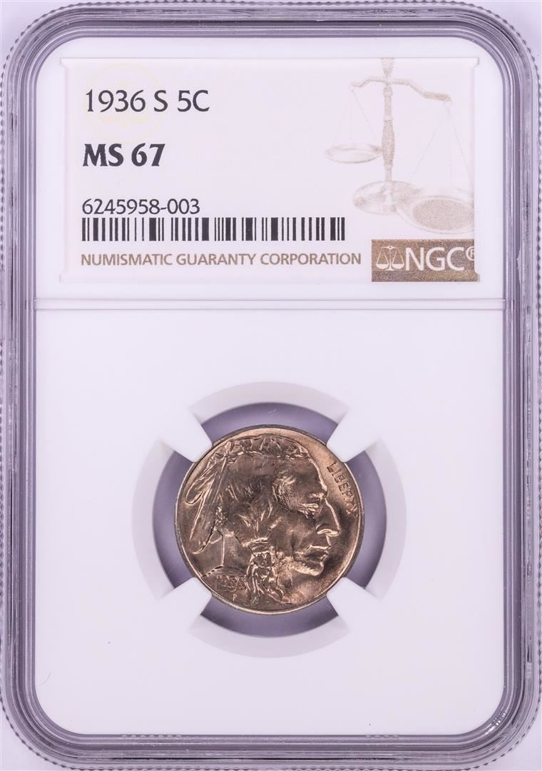 One 1936-S Buffalo Nickel Coin NGC MS67. NGC Certified.