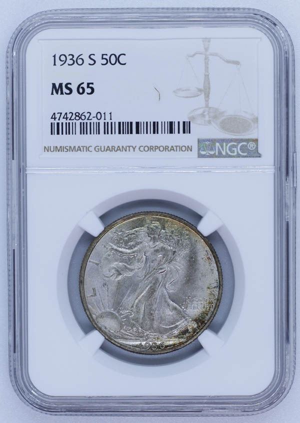 1936-S Liberty Walking Half Dollar. NGC graded MS-65.