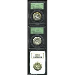 <TR><TD width="100%"><TABLE cellSpacing=1 cellPadding=3 width="100%" border=0><TBODY><TR><TD width="100%" bgColor=#79735c><FONT face=arial color=#ffffff size=3><B>Description</B> </FONT></TD></TR><TR><TD width="100%" bgColor=#ffffff><FONT face=arial size=2><B>1936 SET Texas PDS Set MS65 and MS66, PCGS and NGC.</B></I> This set includes: <B>1936 MS66 PCGS,</B></I> well struck and satiny, with light obverse rim toning and a few small ticks on each side; <B>1936-D MS65 PCGS,</B></I> sharply struck and near-brilliant, with virtually mark-free surfaces; and a <B>1936-S MS65 NGC,</B></I> fully struck and satiny, with smooth unabraded fields and a couple of minor marks near the center of each side.<BR><I>From the James L. Moore Collection.</B></I> (3 coins) </FONT></TD></TR></TBODY></TABLE></TD></TR></TBODY></TABLE><BR><A name=PricesRealized></A><TABLE cellSpacing=0 cellPadding=0 width="100%" bgColor=#000000 border=0><TBODY><TR><TD width="100%"><TABLE cellSpacing=1 cellPadding=3 width="100%" border=0><TBODY><TR><TD width="100%" bgColor=#79735c><A name=PR><FONT face=arial color=#ffffff size=3><B>Previous Prices from Heritage Auctions</B> </FONT></A></TD></TR><TR><TD bgColor=#f6f6ed><TABLE cellSpacing=0 cellPadding=0 width="100%" border=1><TBODY><TR><TD align=middle width="33%"><B>Date</B></TD><TD align=middle width="33%"><B>Service</B></TD><TD align=middle width="33%"><B>Price</B></TD></TR><TR bgColor=whitesmoke><TD width="33%"><B>03/21/2000</B></TD><TD width="33%">PCGS</TD><TD width="33%">$470.00</TD></TR><TR bgColor=whitesmoke><TD width="33%"><B>10/15/2002</B></TD><TD width="33%">NGC</TD><TD width="33%">$494.50</TD></TR></TBODY></TABLE></TD></TR><TR><TD bgColor=#ffffff><FONT face=arial size=1 ?>PLEASE NOTE: All prices realized reflect the final hammer price PLUS the buyer's premium in auctions that charge a buyer's premium. Each item has a notation at the top of the listing indicating whether that lot included a buyer's premium. Example: A item that sells with a final hammer price of $100 and a 20% buyer's premium will display with a price realized of $120. All information listed is intended to be as accurate as possible, but errors are possible. Please use this guide carefully and inform us of any inaccuracies. </FONT></TD></TR></TBODY></TABLE></TD></TR></TBODY></TABLE><BR><TABLE cellSpacing=0 cellPadding=0 width="100%" bgColor=#000000 border=0><TBODY><TR><TD width="100%"><TABLE cellSpacing=1 cellPadding=3 width="100%" border=0><TBODY><TR><TD width="100%" bgColor=#79735c colSpan=6><FONT face=arial color=#ffffff size=3><B>Price Guide*</B> </FONT></TD></TR><TR bgColor=#f6f6ed><TD align=middle><B>Grade</B> </TD><TD align=middle><B>Coin World<BR>(Trends)</B> </TD><TD align=middle><B>Numismedia<BR>Retail</B> </TD><TD align=middle><B>Numismedia<BR>Wholesale</B> </TD><TD align=middle><B>Coin<BR>Universe</B> </TD><TD align=middle><B>Heritage<BR>Value Index</B> </TD></TR><TR><TD colSpan=6>No Pricing Data Available</TD></TR><TR bgColor=#ffffff><TD colSpan=6><FONT size=1>*All information listed is intended to be as accurate as possible, but errors are possible. No item may be returned or refused based on this information which is provided as a service to our customers. You should contact each pricing source directly to determine the accuracy of this information. </FONT></TD></TR></TBODY></TABLE></TD></TR></TBODY></TABLE><BR><TABLE cellSpacing=0 cellPadding=0 width="100%" bgColor=#000000 border=0><TBODY><TR><TD width="100%"><TABLE cellSpacing=1 cellPadding=3 width="100%" border=0><TBODY><TR><TD width="100%" bgColor=#79735c><FONT face=arial color=#ffffff size=3><B>Population Guide</B> </FONT></TD></TR><TR bgColor=#ffffff><TD align=middle><!-- Begin Output of Population Grid--><TABLE cellSpacing=0 cellPadding=0 width="100%" border=0><TBODY><TR><TD vAlign=center><TABLE cellSpacing=0 width="100%" border=1 cellsadding="3"><TBODY><TR><TD vAlign=center><TABLE cellSpacing=0 cellPadding=3 width="100%" border=1><TBODY><TR><TD vAlign=center align=middle bgColor=#f0f1e8 colSpan=2 <CENTER><FONT face=Arial size=2><B>PCGS Pop </B></FONT><CENTER></CENTER></TD><TD vAlign=center align=middle bgColor=#f0f1e8 colSpan=2><CENTER><FONT face=Arial size=2><B>NGC Pop</B></CENTER></FONT></TD></TR><TR><TD vAlign=center><FONT face=Arial size=2>(66)</FONT> </TD><TD vAlign=center align=right><FONT face=Arial size=2>0</FONT> </TD><TD vAlign=center><FONT face=Arial size=2>(66)</FONT> </TD><TD vAlign=center align=right><FONT face=Arial size=2>0</FONT> </TD></TR><TR><TD vAlign=center><FONT face=Arial size=2>(>66)</FONT> </TD><TD vAlign=center align=right><FONT face=Arial size=2>0</FONT> </TD><TD vAlign=center><FONT face=Arial size=2>(>66)</FONT> </TD><TD vAlign=center align=right><FONT face=Arial size=2>0</FONT> </TD></TR></TBODY></TABLE></TD></TR></TBODY></TABLE></TD></TR></TBODY></TABLE><!-- End Output of Population Grid--></TD></TR></TBODY></TABLE></TD></TR></TBODY></TABLE><BR><TABLE cellSpacing=0 cellPadding=0 width="100%" bgColor=#000000 border=0><TBODY><TR> 3 coins Important notice: We expect to be auctioning lots at the rate of 200-250 per hour. On occasion eBay live bid software cannot keep up with the pace of the auctions where 4-5 lots per minute can hammer down, so we recommend that you place a realistic absentee bid now as insurance to avoid disappointment. Also please note that all Heritage/CAA lots purchased through eBay Live carry a 20% Buyer's Premium. Please make sure you read the Terms and Conditions.