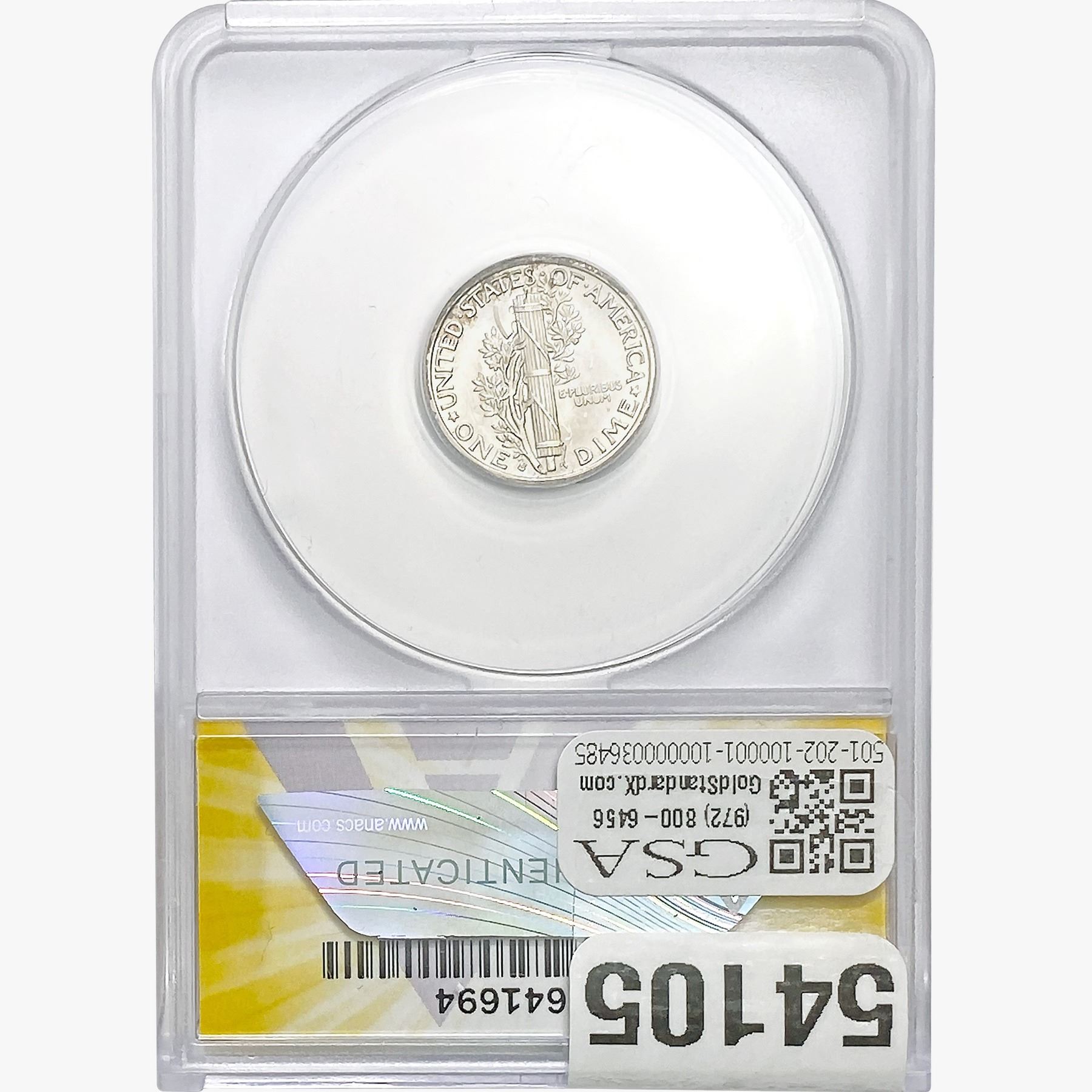 e. Coins sold referencing a third-party grading service are sold “AS IS” without any express or implied warranty, except for a guarantee by GSA that they are genuine. Removal or alteration of the holder, voids all of Bidder’s claims concerning that Product. Certain warranties may be available from the grading services and Bidders are referred to them for further details: Numismatic Guaranty Corporation (NGC), PO Box 4776, Sarasota, FL 34230, www.ngccoin.com/services/writtenguarantee.asp; Professional Coin Grading Services (PCGS), PO Box 9458, Newport Beach, CA 92658, www.pcgs.com/guarantee.html; ANACS, 6555 S. Kenton St., Ste. 303, Englewood, CO 80111; and Independent Coin Grading Co. (ICG), 7901 East Bellview, Ave., Suite 50, Englewood, CO 80111.