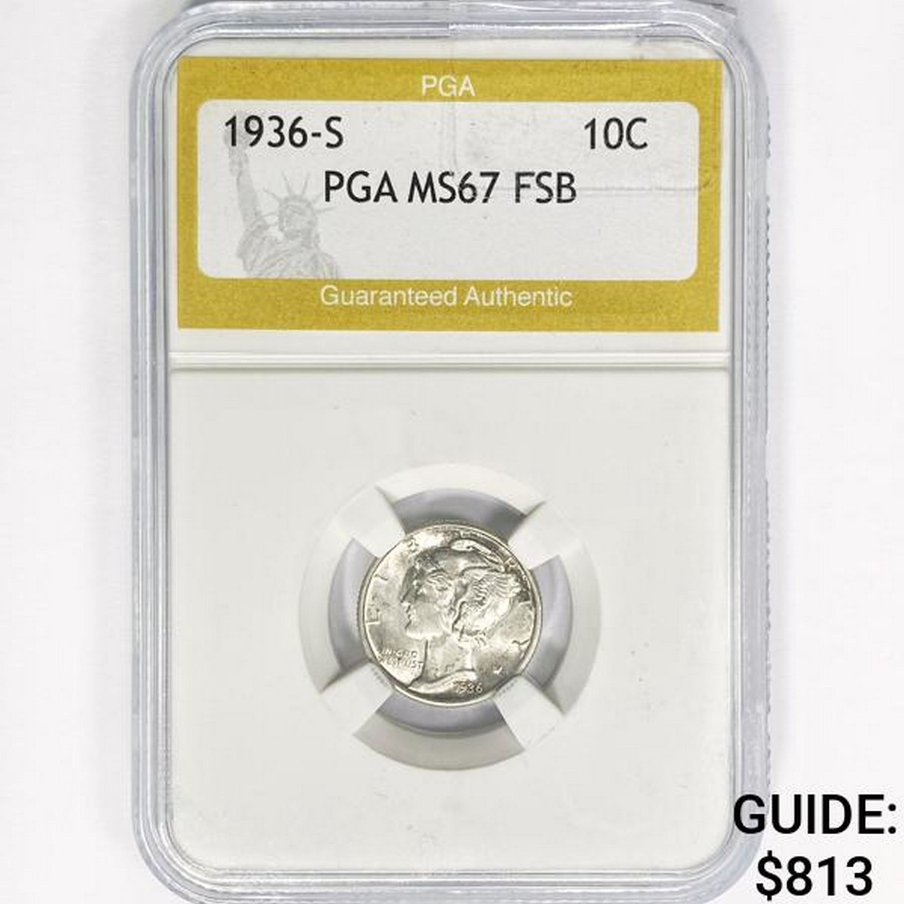 1936-S Mercury Silver Dime PGA MS67 FSB
