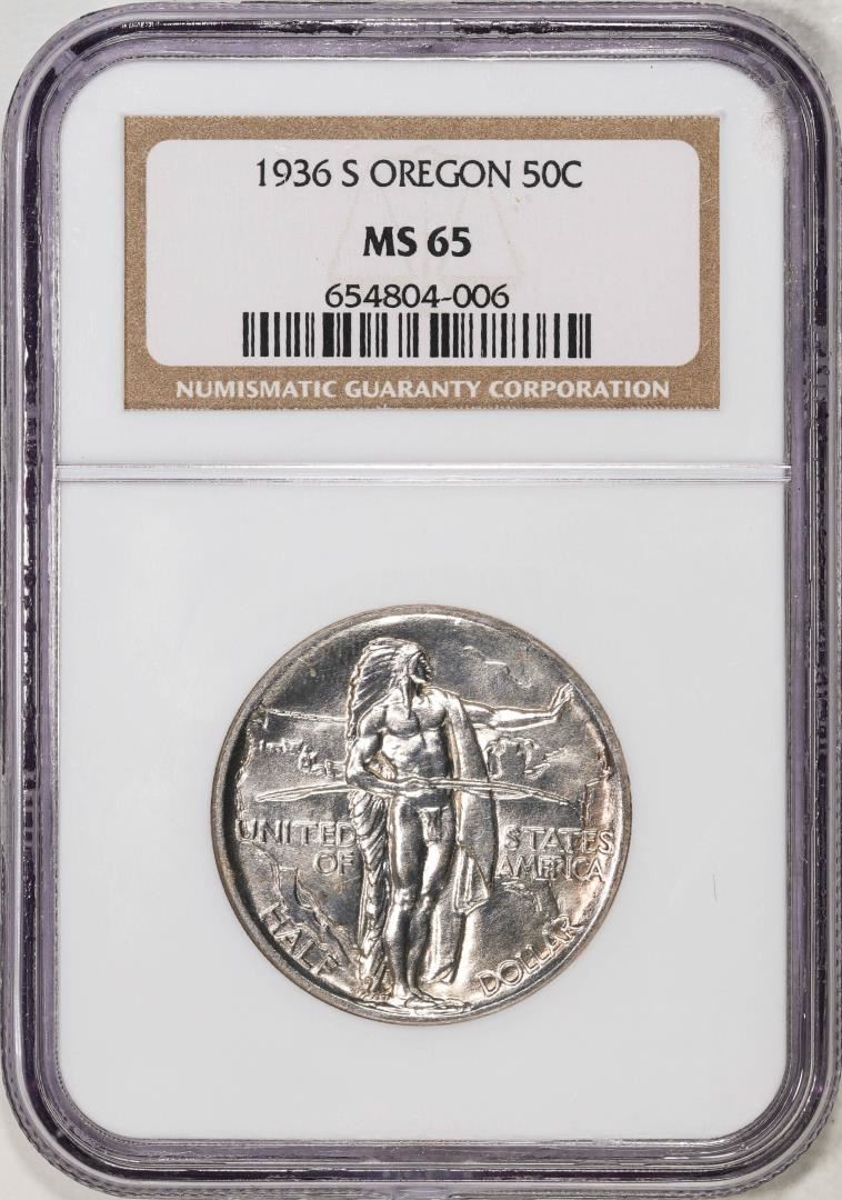 One 1936-S Oregon Trail Commemorative Half Dollar Coin NGC MS65. NGC Certified.