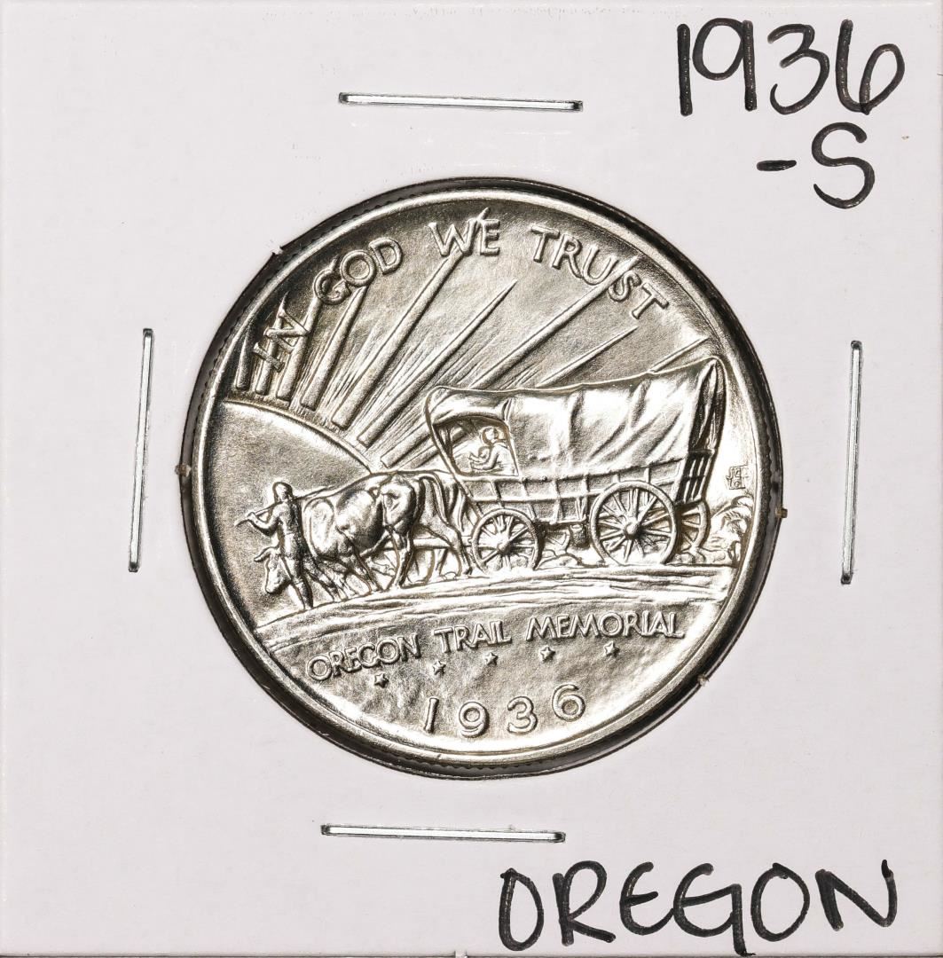 One 1936-S Oregon Trail Memorial Commemorative Half Dollar Coin.