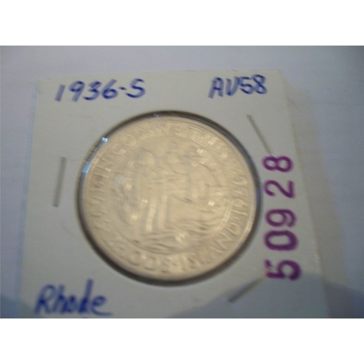 1936 -S Silver Rhode Island Commemorative, AU-58+