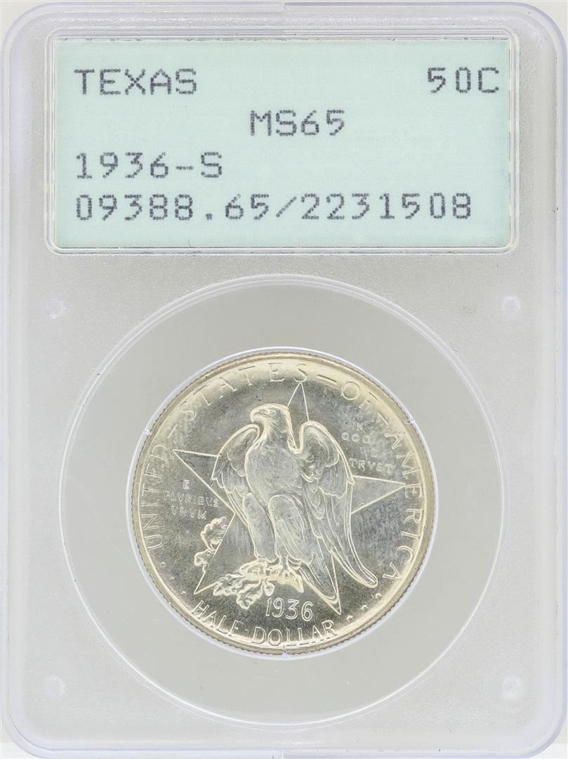 One 1936-S Texas Commemorative Half Dollar Coin PCGS MS65 Rattler. PCGS Graded.