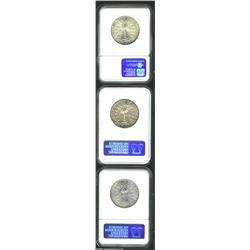 1936 SET Columbia PDS Set MS66 NGC. The P-mint Gem has good luster and a well preserved obverse; the D-mint representative has immaculate surfaces, modest luster, and a faint reverse fingerprint; The S-mint Gem is flashy and extraordinarily clean. All three coins are sharply struck and have light golden-brown patina. 3 coins Important notice: We expect to be auctioning lots at the rate of 200-250 per hour. Sometimes eBay Premier live bid software cannot keep up with that pace, so we strongly recommend that you place a realistic proxy bid now as insurance to avoid disappointment. Also please note that all Heritage/CAA lots purchased through eBay Premier carry a 20% Buyer's Premium. Please make sure you read the Terms and Conditions.