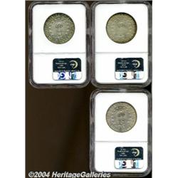<B>1936<SET> Columbia PDS Set MS67 NGC.</B></I> The set includes: <B>1936,</B></I> light rainbow toning around the peripheries, and a couple of light marks on each side; <B>1936-D,</B></I> lustrous and bold, with soft rose and sky-blue toning on the reverse; and a <B>1936-S,</B></I> wisps of tobacco-brown, gold, lavender, and powder-blue color, lustrous. The holders possess consecutive serial numbers. 3 Coins <BR><BR><B>Important notice:</B> Heritage usually auctions material at the rate of 200-250 lots per hour. On some occasions eBay Live bid software or the Internet may not be able to keep up with the pace of the auction. We recommend placing a realistic absentee bid now as insurance to avoid disappointment. Occasionally the auctioneer may eliminate or reject an eBay Live bid, and the auctioneer may also reopen a lot after the close of the eBay live bidding (usually because we missed an audience bid), and may reject your bid even if it shows you as the winning bidder. By bidding via eBay Live, you agree that Heritage may award the lot to another bidder at its sole discretion under the circumstances described above or any other reasonable circumstances. Since eBay bids are not shown to us until we open the lot on the floor, we treat those bids just like floor bids. In most cases the floor responds before the eBay bid is presented to us, due to Internet lag time, so for consistency we have made it a policy that floor bids are always considered first over tie eBay live bids. Also please note that all Heritage lots purchased through eBay Live carry a 20% Buyer's Premium. Please make sure you read the Terms and Conditions before you bid. </span></font></tr></table></td></tr></table>