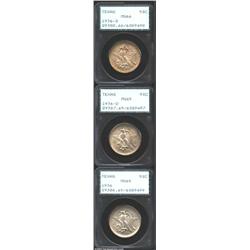 1936 SET Texas PDS Set that includes: 1936 MS65 PCGS, a very good strike; 1936-D MS65 PCGS, well struck; and a 1936-S MS66 PCGS, a good strike. All three Commemoratives have light milky-brown patina, good luster, and exceptionally preserved surfaces. The older, small-size PCGS holders have consecutive serial numbers, and the three coins may well have belonged to the same original set. 3 coins Important notice: We expect to be auctioning lots at the rate of 200-250 per hour. Sometimes eBay Premier live bid software cannot keep up with that pace, so we strongly recommend that you place a realistic proxy bid now as insurance to avoid disappointment. Also please note that all Heritage/CAA lots purchased through eBay Premier carry a 20% Buyer's Premium.
