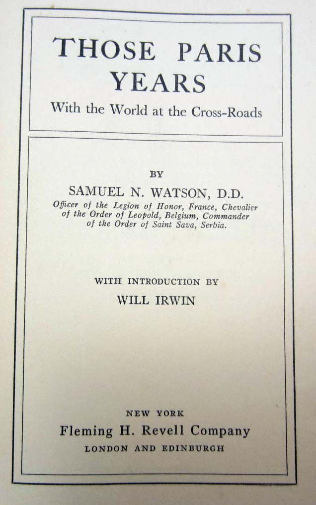 "Those Paris Years With the World At the Cross-Roads" by Samuel N. Watson. Limited Edition No. 762.