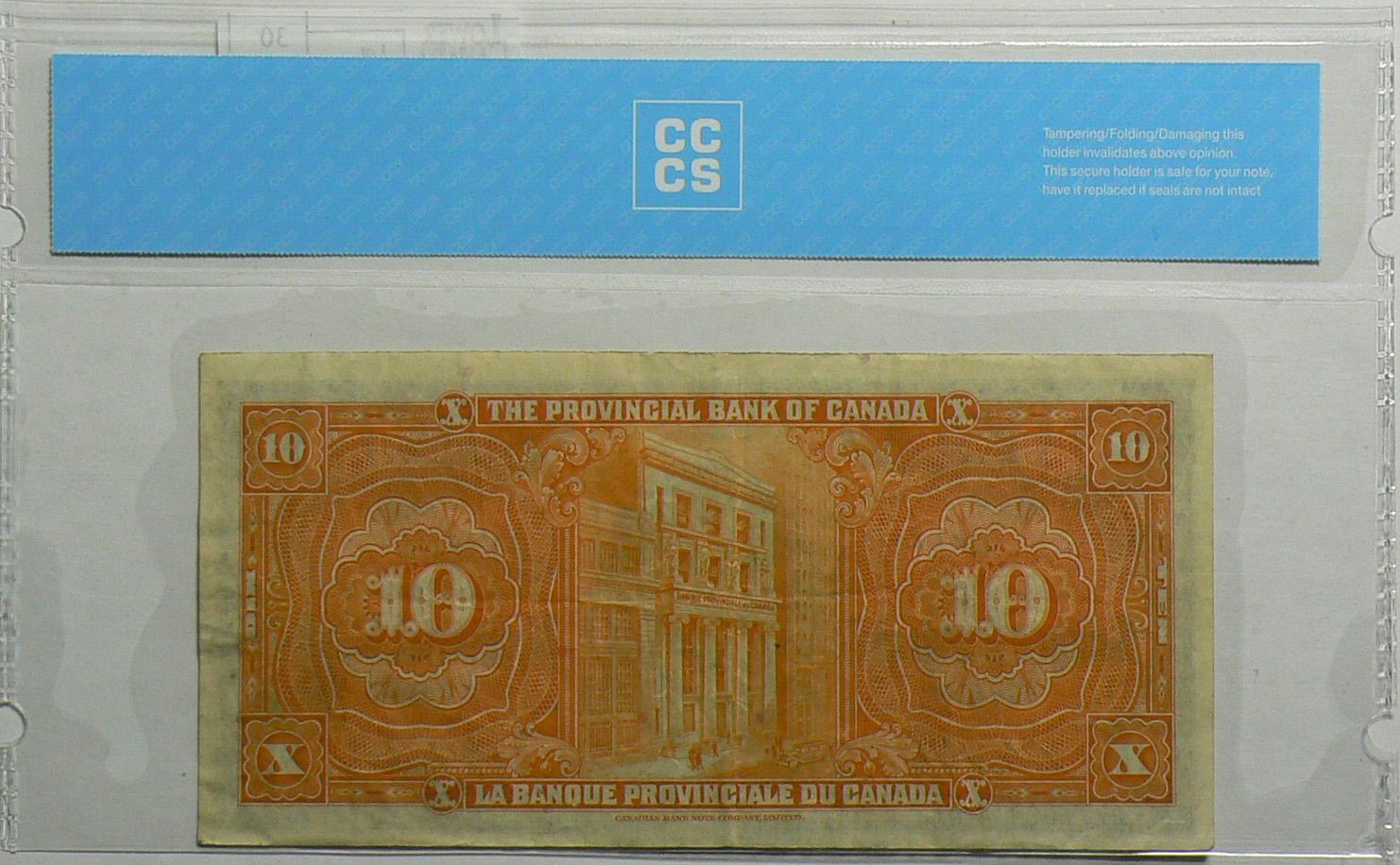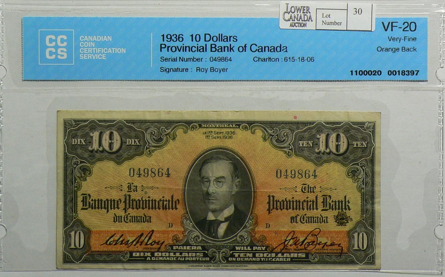 1936 Ten Dollars Banque Provinciale du Canada, 615-18-06, CCCS VF-20, Letter D, serial 049864.