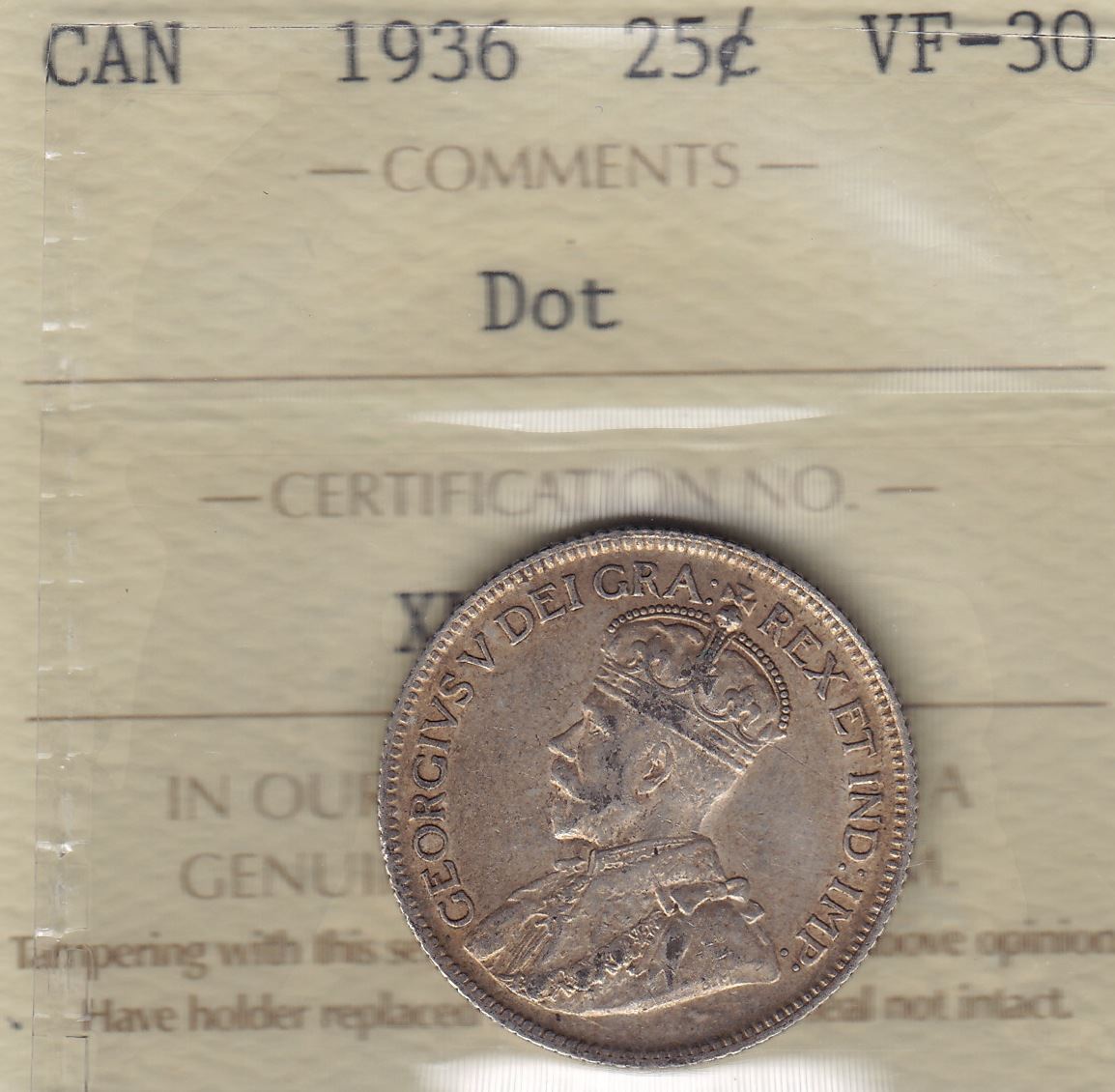 1936 Twenty Five Cent ICCS VF-30, Dot.