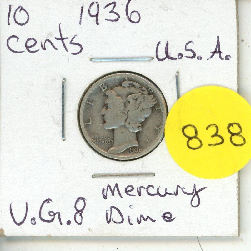 1936 U.S.A. One Cents Coin - Mercury Dime.