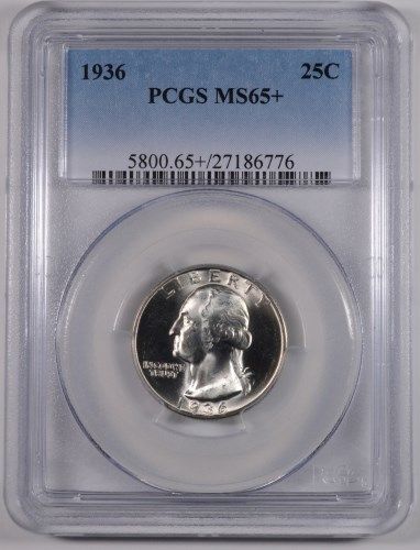 1936 WASHINGTON QUARTER, PCGS MS-65+ GEM WHITE