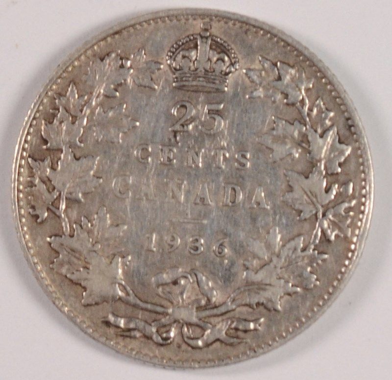 1936 WITH DOT CANADIAN QUARTER, ABOUT XF RARE!!! LISTS FOR $500.00 IN XF