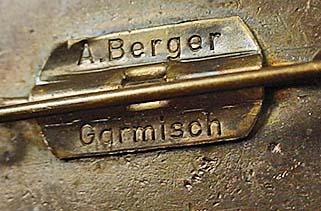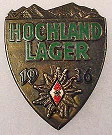 1936 WW2 GERMAN NAZI HITLER YOUTH HOCHLAND LAGER BADGE - Maker marked A. Berger Garmisch. For Alpine Unit Bronze Class. Red, White and Green enamel.