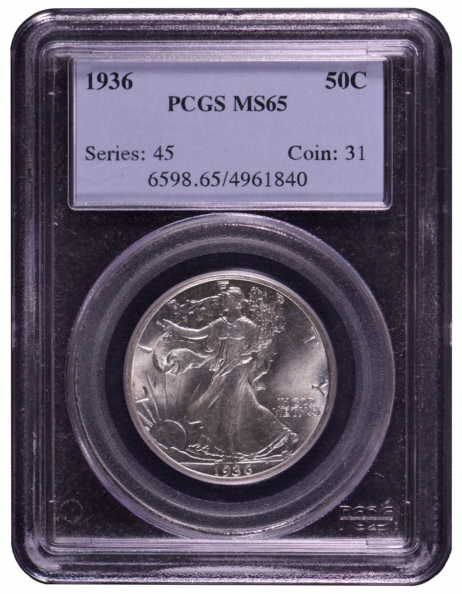 One 1936 Walking Liberty Half Dollar Coin PCGS MS65.