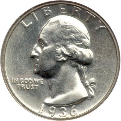 1936 Washington Quarter Dollar. NGC graded Proof 66. A boldly origiinal white surface Gem Proof, with great depth to the detail and nice mint bloom. This coin is sharp, very sharp, in fact. Pop 138; 20 finer in 67.