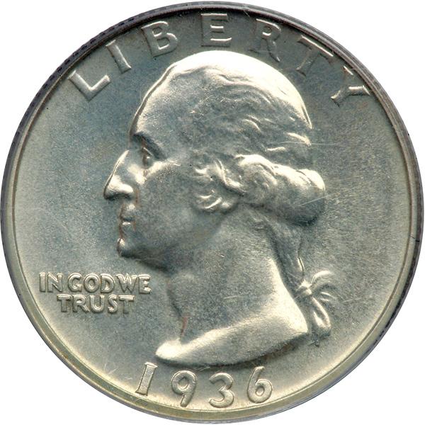 1936 Washington Quarter Dollar. PCGS graded Proof 64. Nice even toning. 3,837 minted. First year of issue and a strikingly attractive, well made and spot-free coin for the collector (PCGS # 5975) .