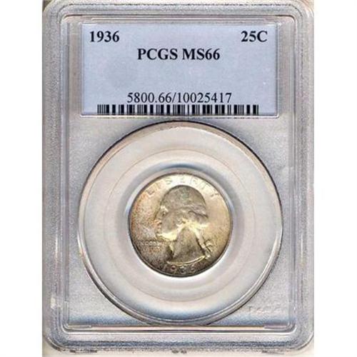 <b>1936 Washington Quarter Dollar. PCGS graded MS66.</b> Another with gem surfaces, original toning, plenty of eye-appeal <b>(PCGS # 5800)</b> <i>