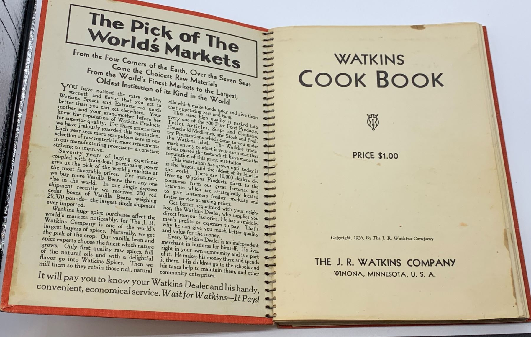 1936 Watkins Cookbook in Great Condition