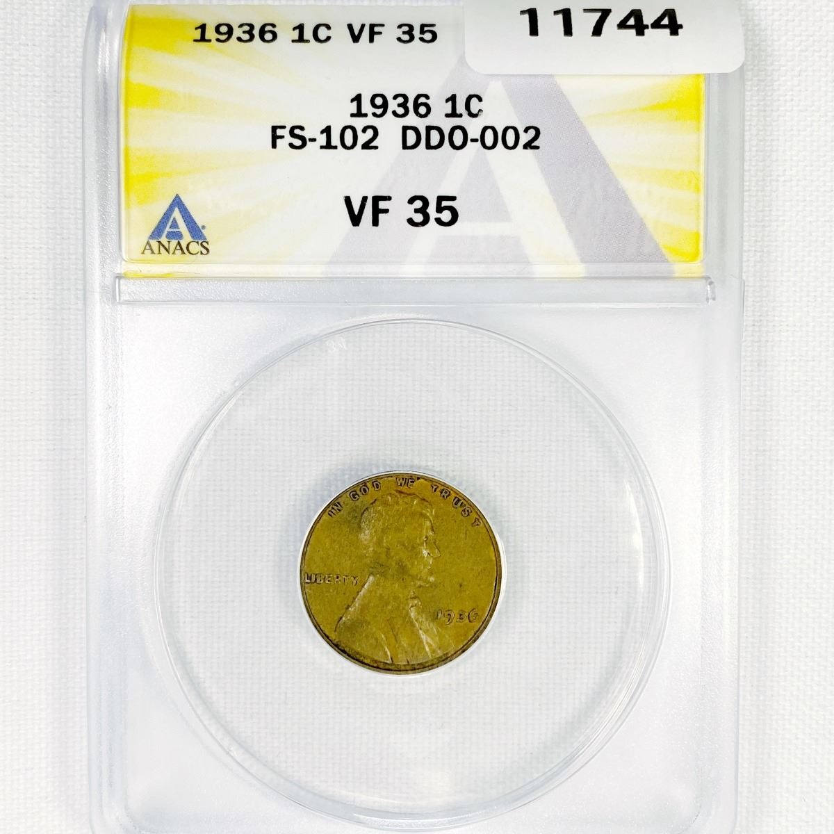 1936 Wheat Cent ANACS-VF35 FS-102 DDO-002